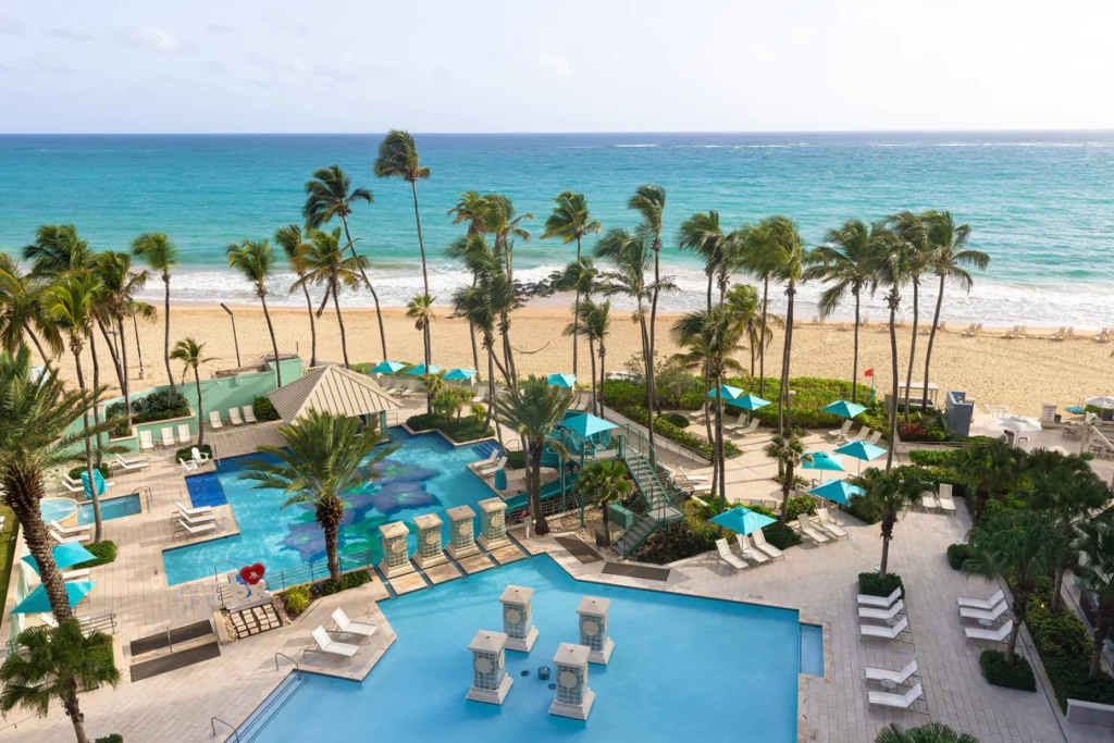 Das San Juan Marriott Resort und Stellaris Casino, eine luxuriöse Oase, liegt am wunderschönen Condado Beach in San Juan, Puerto Rico. Dieses luxuriöse Resort mit seiner erstklassigen Strandlage verbindet nahtlos moderne Annehmlichkeiten mit karibischem Flair. Mit ihrem modernen Design bieten die neu renovierten Gästezimmer und Suiten einen erholsamen Rückzugsort mit atemberaubendem Blick auf das Meer oder die Stadt. Der Pool des Resorts ist auf ultimative Entspannung ausgelegt und bietet Wasserfälle und eine Swim-up-Bar für ein einzigartiges Erlebnis.